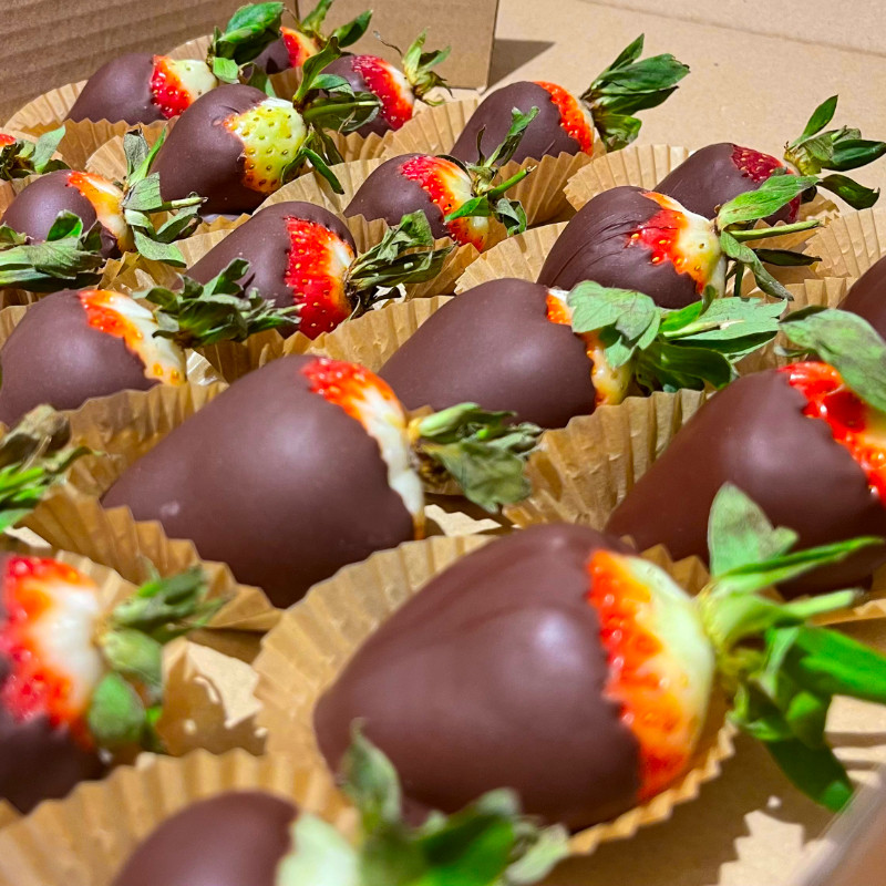 Delicious, super-sweet strawberries, lovingly hand-dipped in our signature chocolate and beautifully arranged in a gift box or platter.