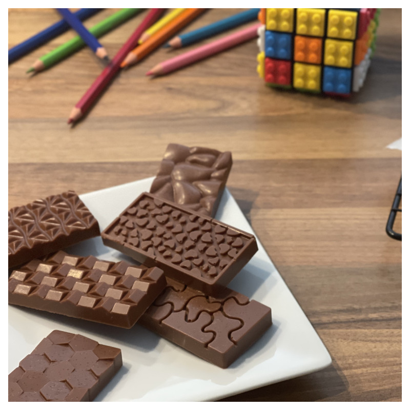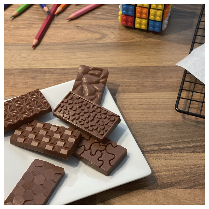 Our Kids' Chocolate Bars are just the right size for little hands (and tummies)! With fun and quirky shapes and patterns that are sure to spark imagination, these bars are a sweet way to keep kids engaged and delighted.